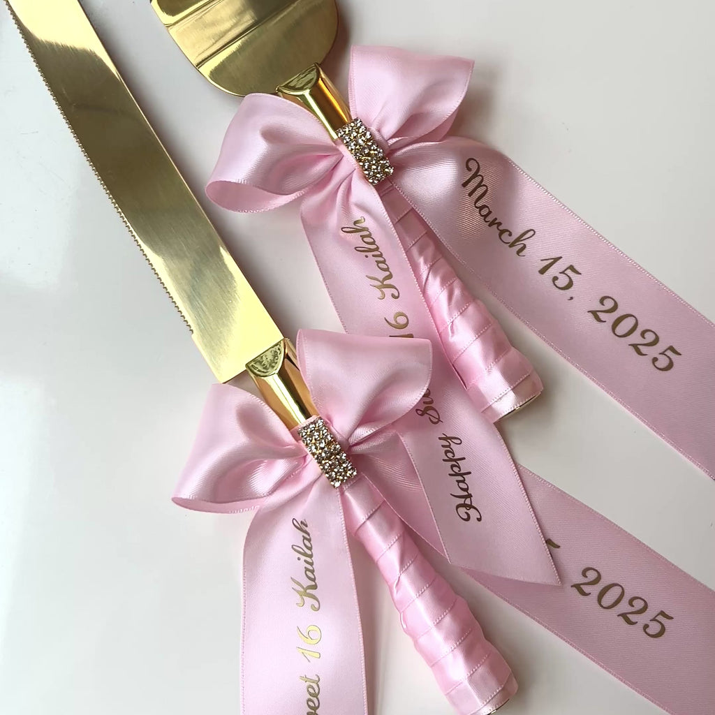 The Cake Serving Set includes one 13.5" long cake knife and one 11" long cake server.